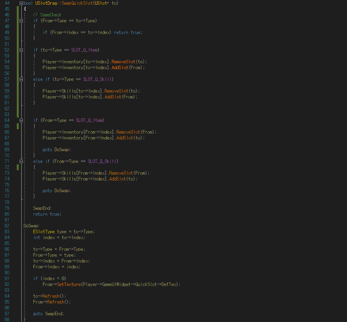 Drop당시 Drag를 시작한 슬롯의 타입이 Skill이거나 Q_Skill인 경우에 대한부분을 추가해줍니다.